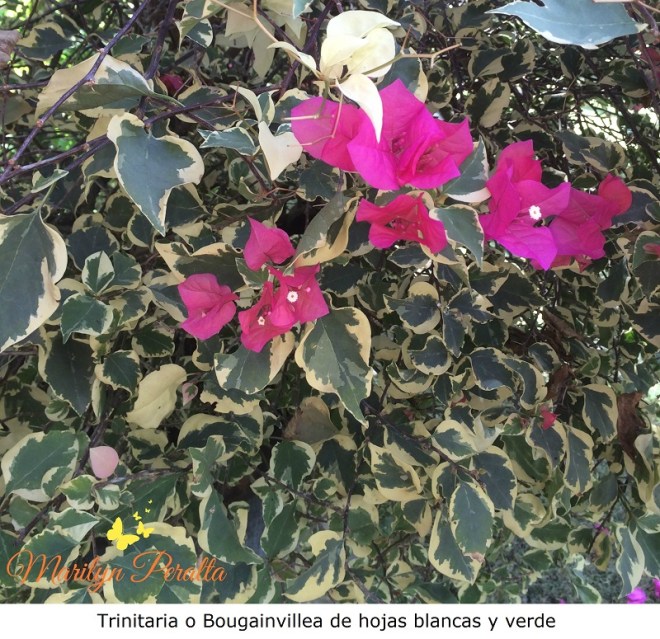 Trinitaria o Bougainvillea con hojas blancas y verde
