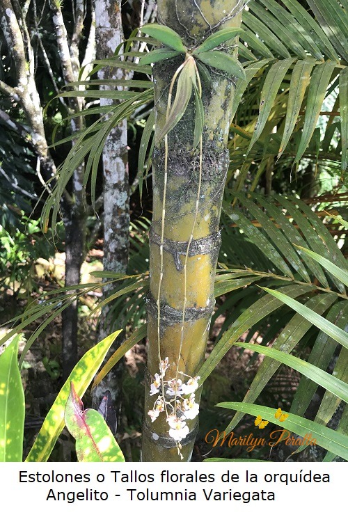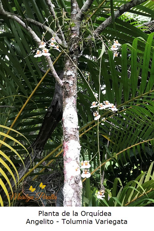 Los ejemplares de orquídea Angelito de las fotos se encuentran en la loma de Blanco, en Bonao. En Bonao se le conoce mejor como Gallito y cubre tan profusamente los árboles que se considera invasiva.