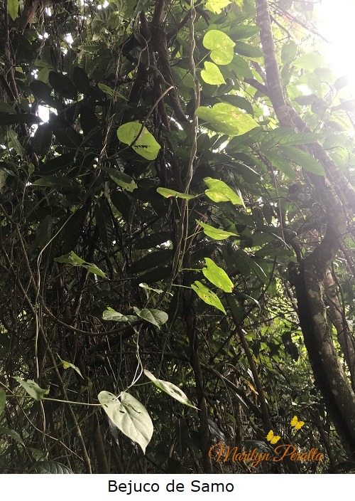 Sus tallos con largos, suculentos, de color verde. Poseen tres caras en ángulo (triangulares) con márgenes ondulados y con una longitud de algunos centímetros hasta 5 metros en plantas adultas.