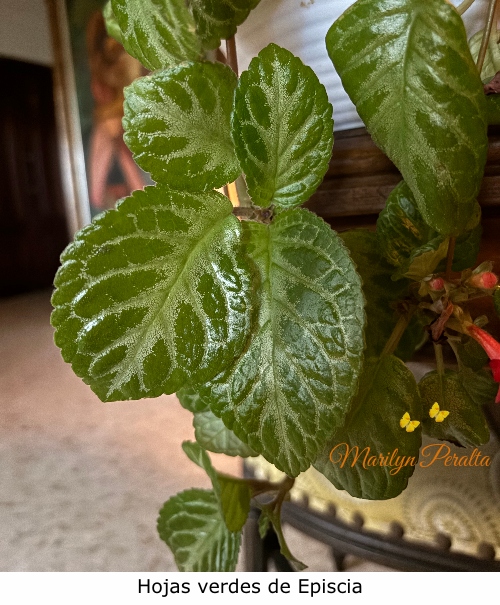 Las hojas son simples, de margen entero y ápice redondeado. Son de textura gruesa y coriácea, de color verde oscuro brillante por el haz y verde más pálido por el envés. Crecen orientadas hacia arriba, igual que las del árbol de Magnolia.