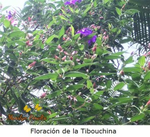 La floración de la Tibouchina se produce en los terminales de las ramas y son de color rojo, que envuelve a la flor verdadera.
