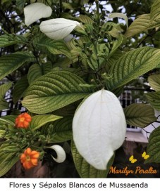 Flores y sépalos blancos de Mussaenda