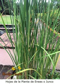 Las hojas de la Planta de Eneas o Junco son alargadas y nacen directamente de la base o rizoma. Son usadas para fabricar cestas y bases de sillas.