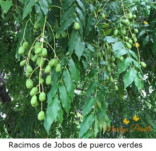 El fruto del Jobo dulce tiene una pulpa jugosa, de sabor agradable y más abundante. El Jobo de puerco tiene menos pulpa y su sabor es más ácido y menos apetecible.