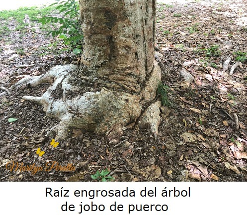 La corteza del tronco de Spondias purpurea es lisa y no fisurada como la de Spondias mombin.