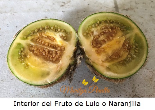 Los frutos son unas legumbres peludas ligeramente curvas color castaño, casi cilíndricas, un poco cuadradas. Contienen una pulpa blanca, jugosa con pocas semillas y no se abren al madurar. Las semillas son de color amarillo verdoso.