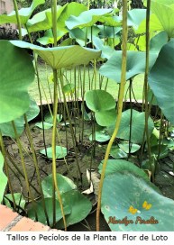 Los tallos o pecíolos de la planta de flor de loto tienen una altura de 1 a 2 metros y brotan directamente de los rizomas. Estos tallos dan lugar a las hojas o las flores de la planta.
